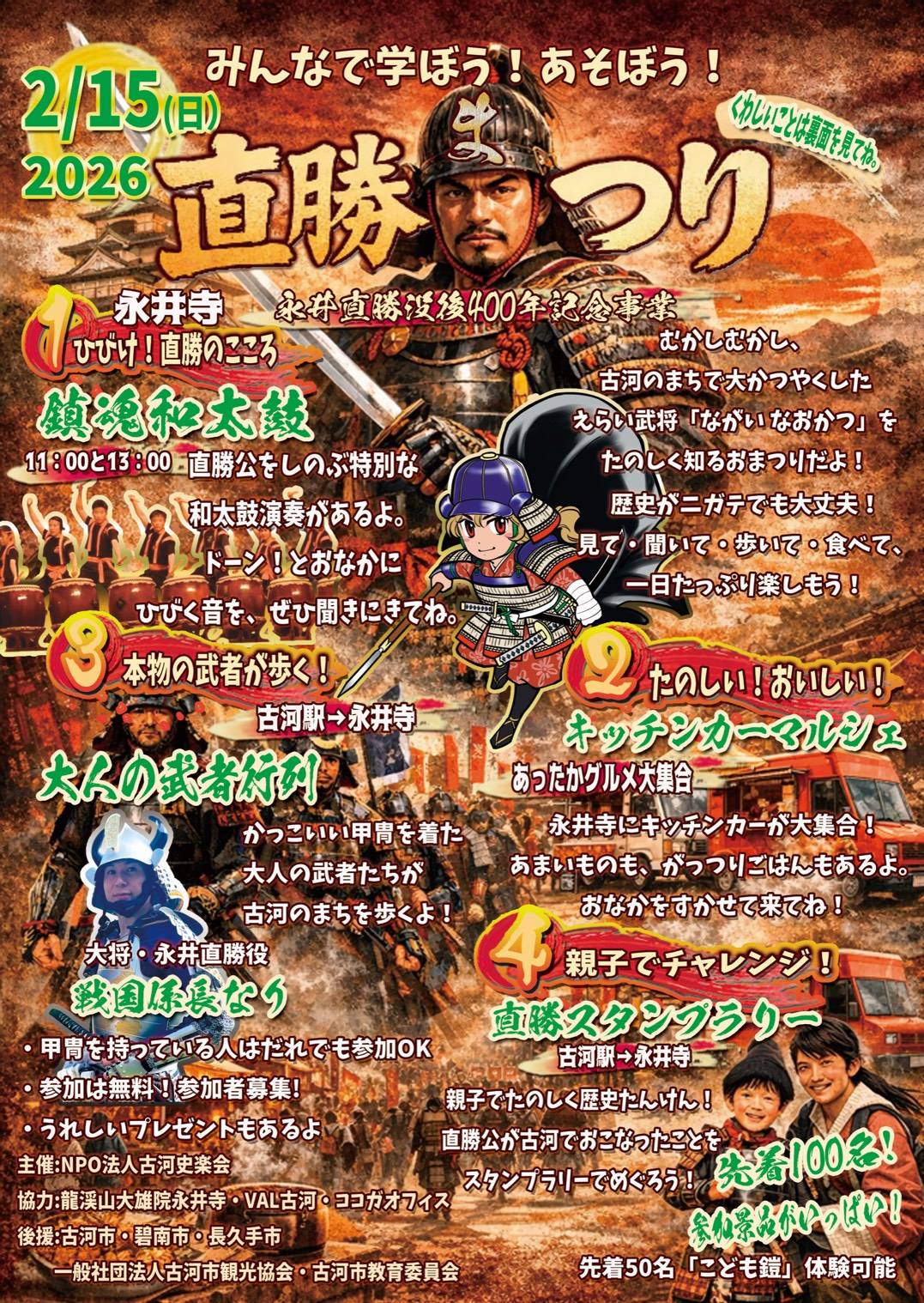 400年前に亡くなった長久手合戦の英雄、永井直勝公を偲んで2026年2月15日㈰に武者行列&スタンプラリーを開催致します!